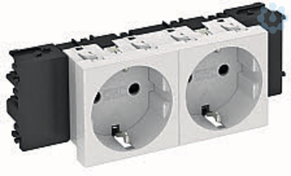 Schutzkontakt-Steckdose Modul 45connect 2fach mit 0° Steckrichtung, mit Verbindungsklemmen nach IEC 60884-1, zur Installation in Geräteeinbaukanäle Rapid 45.