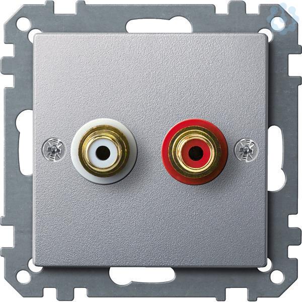 Mit zwei Chinch-Steckbuchsen. Farben Rot und Weiß. Vergoldete Kontakte. Kontakte mit Lötanschlüssen. Material Thermoplast edelmatt. Farbe aluminium.