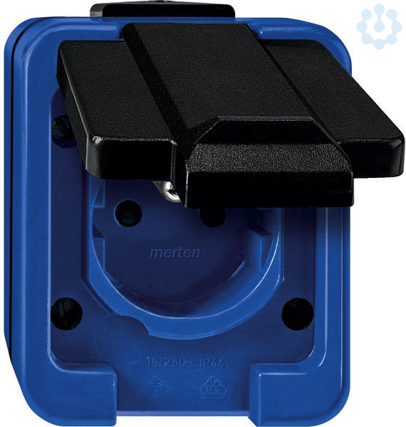 Erhöhter Berührungsschutz. Herausnehmbarer Sockel. Geeignet für die Aufputz-Montage. Mit Schraubklemmen als Verbindungsklemmen nach VDE 0620 Teil 1. Farbe blau.