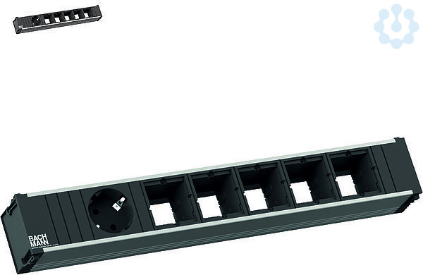 CONI Steckdoseneinheit ALU Länge: 6-fach / 356mm mit erhöhtem Berührungsschutz. 1xSchutzkontaktsteckdose sw. 5x Custom Modul leer. Stromeingang: 0,20m H05VV-F 3G1,50mm² schwarz mit Wieland GST18 Steckverbinder.
