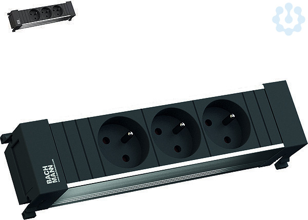 Power Frame Steckdoseneinheit ALU Länge: 219,6 +/- 0,2mm. 3 Steckdosen Frankreich/UTE sw mit erhöhtem Berührungsschutz. Festanschluß mit 0,20m Zultg. H05VV-F 3G1,5mm² sw mit Wieland GST18 - Stecker. einzeln im Polybeutel