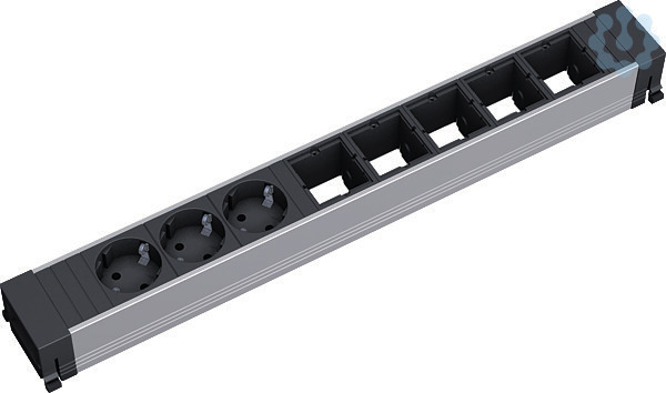 CONFERENCE Steckdoseneinheit ALU Länge: 444mm mit erhöhtem Berührungsschutz 3xSchutzkontaktsteckdose schwarz 5xCustom Module leer. GST18 Stromein- und ausgang. verpackt im Karton
