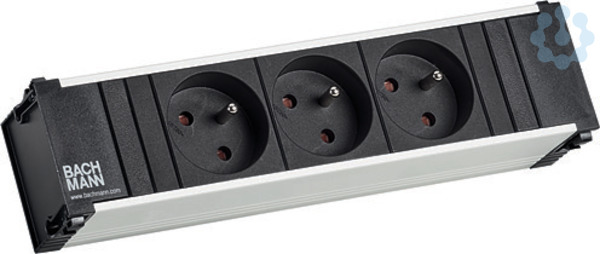 CONI Steckdoseneinheit ALU 3xUTE Steckdosen schwarz mit erhöhtem Berührungsschutz Zuleitung 0,2 H05VV-F 3G1,5mm² schwarz mit GST18 Stecker mit Bachmann Logo verpackt im Karton