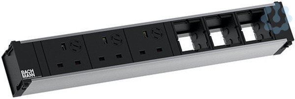 CONI Steckdoseneinheit ALU Länge: 6-fach / 356mm 3xUK 90° 3,15A sw. 3xCustom Module leer Stromeingang: 0,20m H05VV-F 3G1,50mm² schwarz mit Wieland GST18 Steckverbinder. .