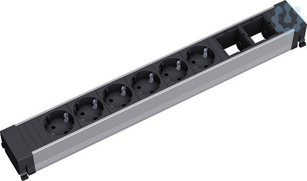 CONFERENCE Steckdoseneinheit ALU Länge: 444mm mit erhöhtem Berührungsschutz, 6xSchutzkontaktsteckdose sw. 2xCustom Module leer GST18 Stromein- und ausgang.