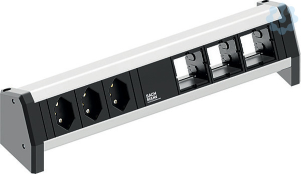 DESK Steckdoseneinheit ALU 3xCH/Schweiz 0° sw. mit Thermosicherung 10A 3xCustom Module leer. GST18 Stromein- und ausgang.