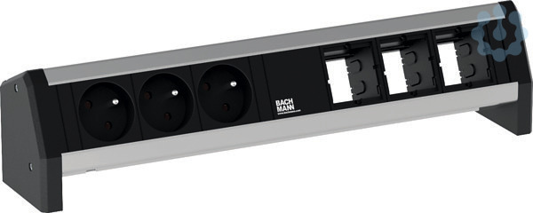 DESK Steckdoseneinheit ALU 3xUTE/Frankreich sw. 3xCustom Module leer. GST18 Stromein- und ausgang.