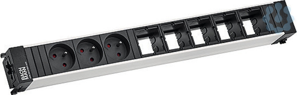 CONFERENCE Steckdoseneinheit ALU Länge: 444mm 3xUTE/Frankreich sw. 5xCustom Module leer GST18 Stromein- und ausgang.
