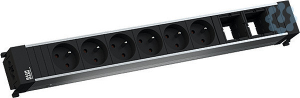CONFERENCE Steckdoseneinheit ALU Länge: 444mm 6xUTE/Frankreich sw. 2xCustom Module leer GST18 Stromein- und ausgang. verpackt im Karton