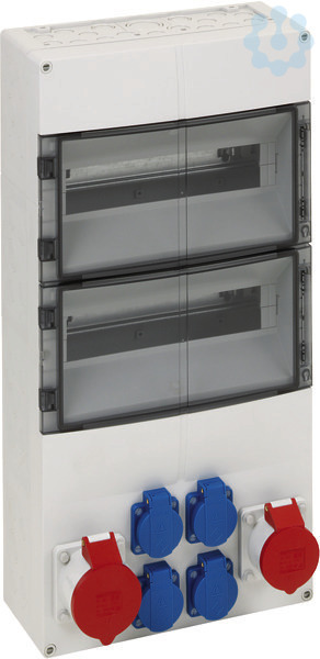 Steckdosenverteiler, teilbestückt, zum kundenseitigen Einbau von Reiheneinbaugeräten, mit eingebauten SCHUKO(R)- / CEE -Steckdosen, vorverdrahtet auf PE/N-Klemmen, hohe mechanische Belastbarkeit, temperaturunempfindlich, kombinierbar, Teilungseinheiten: max. 28TE