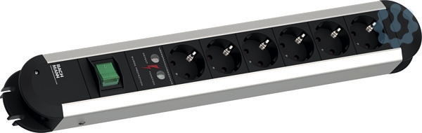 Tischsteckdose PRIMO-CLASSIC-ALU 6-fach mit Überspannungsschutz + Schalter, 2m HO5VV-F 3G1,5mm² schwarz, in Kartonbox