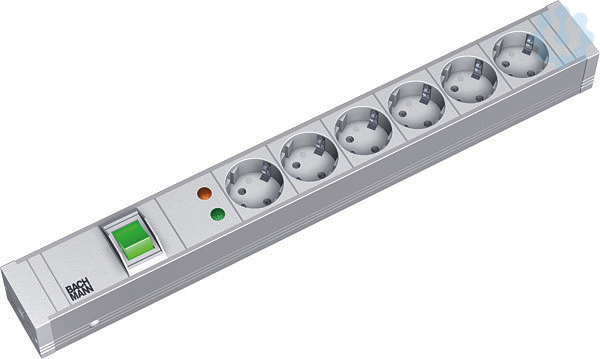 19° - Steckdosenleiste ALU 1,5 HE 6x Schutzkontaktdosen 35° weiss mit Schalter mit Überspannungsschutz Länge: 440mm. Endstücke genietet, nicht öffenbar. 2,0m H05VV-F3G1,50mm² weiss mit Schutzkontaktwinkelstecker. inkl. Befestigungswinkel.