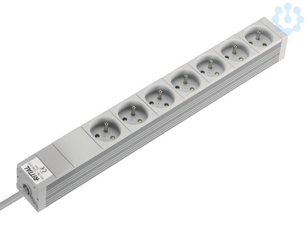 DK Steckdosenleiste, F/B (Typ E, CEE 7/5), 7-fach, 230 V, 16 A, LHT: 482,6x44x44 mm, Anschlusskabel mit Aderendhülsen, Länge: 2 m, Aluminiumprofil, natur eloxiert