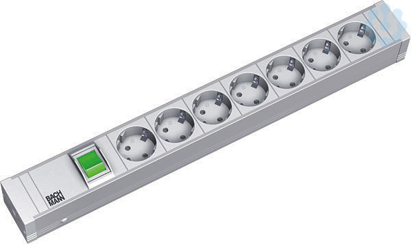 19° 1,5HE Steckdosenleiste 7xSchutzkontaktdosen 35° weiss mit Schalter Länge:440mm. Endstücke genietet, nicht öffenbar. 2,0m H05VV-F 3G1,50mm² weiss mit Schutzkontaktwinkelstecker. inkl. Befestigungswinkel.