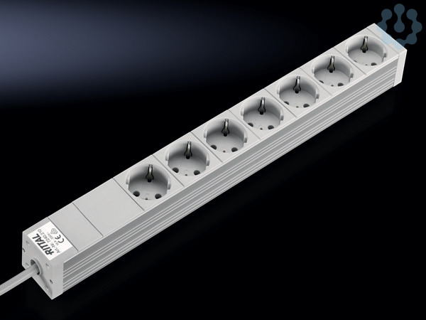 DK Steckdosenleiste, Schuko (Typ F, CEE 7/3), 7-fach, 230 V, 16 A, LHT: 482,6x44x44 mm, Anschlusskabel mit Aderendhülsen, Länge: 2 m, Aluminiumprofil, natur eloxiert