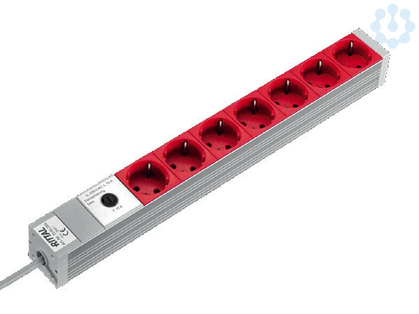 DK Steckdosenleiste, für USV-Stromkreise, rot, Schuko (Typ F, CEE 7/3), 7-fach, 230 V, 10 A, mit G-Sicherung 10 A, LHT: 482,6x44x44 mm