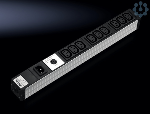 DK Steckdosenleiste, mit Katlgeräteeingang C14, IEC 60 320: 9x C13, 250 V, 10 A, LHT: 482,6x44x44 mm
