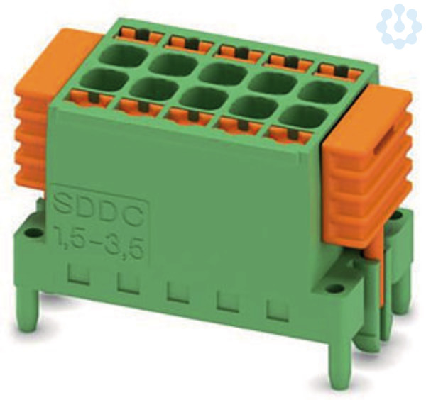 Leiterplatten-Direktstecker, Nennquerschnitt: 1,5 mm², Farbe: grün, Nennstrom: 8 A, Bemessungsspannung (III/2): 160 V, Kontaktoberfläche: Zinn, Anzahl der Potenziale: 10, Anzahl der Reihen: 2, Polzahl pro Reihe: 5, Anzahl der Anschlüsse: 10, Artikelfamilie: SDDC 1,5/..-PV, Rastermaß: 3,5 mm, Anschlussart: Push-in-Federanschluss, Montage: SKEDD - Direktstecktechnik, Anschlussrichtung Leiter/Platine: 90 °, Pin-Layout: Lineares Doppel-Pinning, Stecksystem: SKEDD, Verriegelung: Rastverriegelung, Befestigungsart: Rastflansch, Verpackungsart: verpackt im Karton