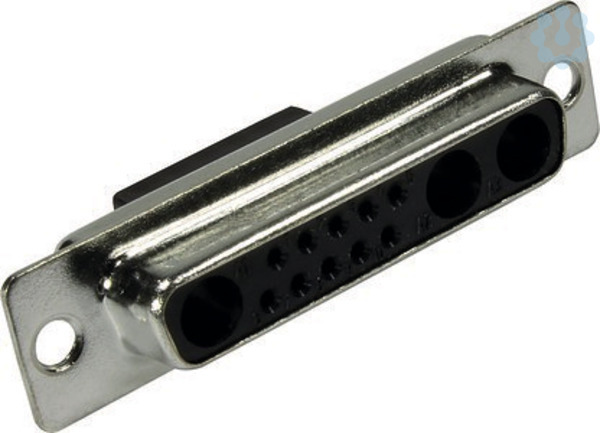 Steckverbinder, Crimpanschluss, Buchse, Baugröße: D-Sub 3, Thermoplastischer Formstoff, glasfaserverstärkt (Polyester), Stahl, verzinnt, schwarz, Kontakte: 13, Kupferlegierung