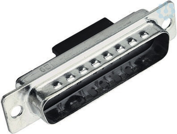 Steckverbinder, Crimpanschluss, Stift, Baugröße: D-Sub 3, Thermoplastischer Formstoff, glasfaserverstärkt (Polyester), Stahl, verzinnt, schwarz, Kontakte: 13, Kupferlegierung