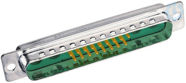 Steckverbinder, Lötkelchanschluss, Bemessungsstrom: 5 A, Stift, Baugröße: D-Sub 4, Thermoplastischer Formstoff, glasfaserverstärkt (Polyester), Stahl, verzinnt, grün, Kontakte: 21, Kupferlegierung