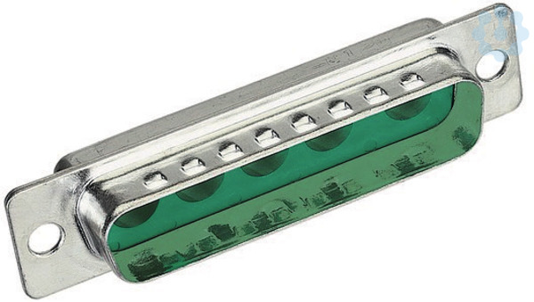 Steckverbinder, Stift, Baugröße: D-Sub 3, Thermoplastischer Formstoff, glasfaserverstärkt (Polyester), Stahl, verzinnt, grün, Kontakte: 5, Kupferlegierung