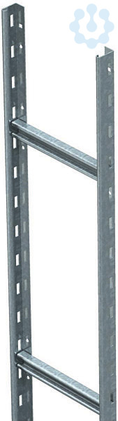 Steigeleiter mit gelochtem Seitenholm in der Seitenhöhe 60 mm mit eingenieteten, nach oben offenen C-Profil-Sprossen. Zur senkrechten Führung von Kabeln und Leitungen.