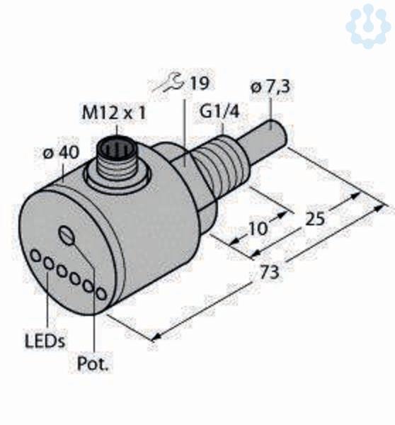 Strömungsüberwachung, Eintauchsensor mit integrierter Auswerteelektronik, Sensor für flüssige Medien, kalorimetrische Funktionsweise, Abgleich über Potentiometer, Anzeige via LED?Kette, DC 3?Draht, 19,2...28,8 VDC, Schließer, PNP?Ausgang, Steckergerät, M12 x 1