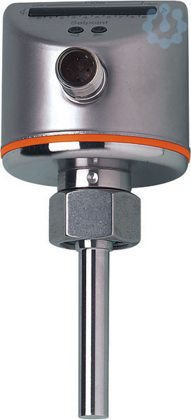 Strömungswächter. PNP. Schaltsignal. Mediumtemperatur -25...80 °C. Druckfestigkeit 300 bar. M18 x 1,5 Innengewinde. Steckverbindung. [Flüssige Medien]: Einstellbereich 3...300 cm/s. Mediumtemperatur -25...80 °C
