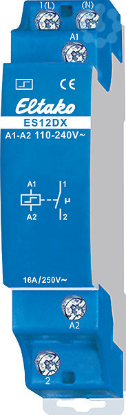 1 Schließer potenzialfrei 16A/250V AC, 230 V-LED-Lampen bis 600W, Glühlampen 2000W. Kein Stand-by-Verlust. Reihenbaugerät für Montage auf Tragschiene DIN-EN 60715 TH35. 1 Teilungseinheit = 18mm breit, 58mm tief. Mit der patentierten Eltako-Duplex-Technologie (DX) können die normalerweise potenzialfreien Kontakte beim Schalten von 230V-Wechselspannung 50Hz trotzdem im Nulldurchgang schalten und damit den Verschleiß drastisch reduzieren. Hierzu einfach den N-Leiter an die Klemme (N) und L an 1(L) anschließen. Dadurch ergibt sich ein Stand-by-Verlust von nur 0,1 Watt. Wird der Kontakt zum Steuern von Schaltgeräten verwendet, welche selbst nicht im Nulldurchgang schalten, sollte (N) nicht angeschlossen werden, da der zusätzliche Schließverzug ansonsten das Gegenteil bewirkt. Steuerspannung 110V AC - 240V AC am Steuereingang A1/A2. Sehr geringes Schaltgeräusch. Keine ständige Stromversorgung erforderlich, daher auch kein Stand-by-Verlust. Modernste Hybrid-Technik vereint die Vorteile verschleißfreier elektronische