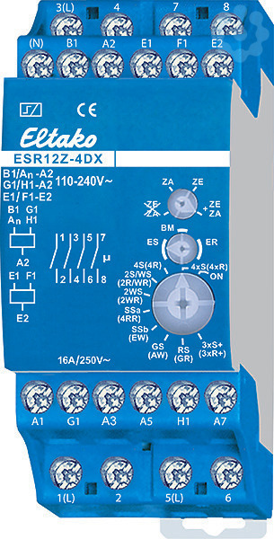 Mit 4 unabhängigen Kontakten, je 1 Schließer potenzialfrei 16?A/250V AC, 230V-LED-Lampen bis 600W, Glühlampen 2000W. Stand-by-Verlust nur 0,03-0,4 Watt. Reiheneinbaugerät für Montage auf Tragschiene DIN-EN 60715 TH35. 2 Teilungseinheiten = 36mm breit, 58mm tief. Mit der patentierten ELTAKO-Duplex-Technologie (DX) können 3 der 4 normalerweise potenzialfreien Kontakte beim Schalten von 230V-Wechselspannung 50Hz trotzdem im Nulldurchgang schalten und damit den Verschleiß drastisch reduzieren. Hierzu einfach den N-Leiter an die Klemme (N) und die Außenleiter an 1(L), 3(L) oder 5(L) anschließen. Dadurch ergibt sich ein zusätzlicher Stand-by-Verlust von nur 0,1 Watt. Wird der Kontakt zum Steuern von Schaltgeräten verwendet, welche selbst nicht im Nulldurchgang schalten, sollte (N) nicht angeschlossen werden, da der zusätzliche Schließverzug sonst das Gegenteil bewirkt. Örtliche Universal-Steuerspannung 110-240V AC. Mit zusätzlichen Universalspannungs-Steuereingängen zentral ein und aus für 110-240V AC, von den örtl