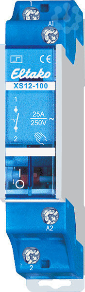 Elektromechanischer-Stromstoßschalter mit Handbetätigung und Schaltstellungsanzeige. Einschaltdauer 100%. Steuerleistungsbedarf 5-6W. Kontaktabstand 3mm.