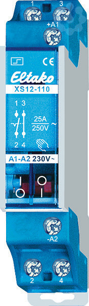 Elektromechanischer Stromstoßschalter mit Handbetätigung und Schaltstellungsanzeige. Einschaltdauer 100%. Steuerleistungsbedarf 5-6W. Kontaktabstand 3mm.