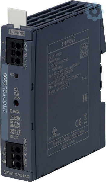 SITOP PSU6200 12 V/2 A Geregelte Stromversorgung Eingang: AC 120 - 230 V (DC 120 - 240 V) Ausgang: DC 12 V/2 A Die 1-phasigen SITOP PSU6200 mini sind schmale und platzsparende Stromversorgungen für den unteren Leistungsbereich. Verwendung finden sie im Bereich dezentraler Anwendungen in Schaltkästen oder in kleinen Schaltschränken. Sie zeichnen sich durch die geringe Verlustleistung über den gesamten Lastbereich aus. Auch im Leerlauf sind die Verluste äußerst gering, weshalb sie u. a. zur effizienten Versorgung von Maschinen und Anlagen prädestiniert sind, die sich oft im Stand-by-Betrieb befinden. Die Schaltnetzteile besitzen einen Weitbereichseingang für Wechselstrom- und Gleichstromnetze, dabei unterstützen Steckklemmen den einfachen elektrischen Anschluss. Der große Temperaturbereich