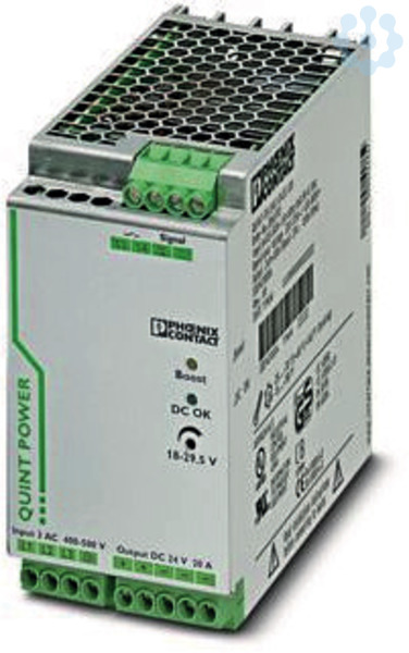 Primär getaktete Stromversorgung, QUINT POWER, Schraubanschluss, SFB Technology (Selective Fuse Breaking), Eingang: 3-phasig, Ausgang: 24 V DC / 20 A