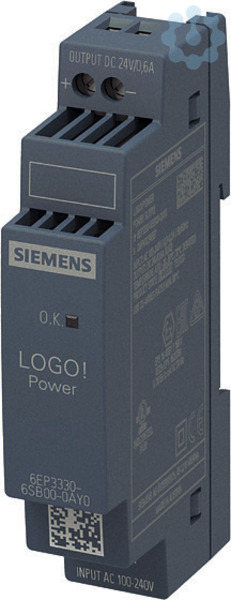LOGO!POWER 24 V / 0,6 A Geregelte Stromversorgung Eingang: AC 100-240 V Ausgang: DC 24 V / 0,6 A Die Mini-Netzgeräte LOGO!Power im Design der LOGO!8-Module bieten viel Leistung auf kleinstem Raum. Der gute Wirkungsgrad über den gesamten Lastbereich und die geringe Verlustleistung im Leerlauf garantieren einen effizienten Betrieb. Der Weitbereichseingang für 1-phasige Netze und für Gleichspannungsnetze, sowie die Leistungsreserve beim Einschalten kapazitiver Lasten, erfüllen Anforderungen zahlreicher Applikationen. Einen universellen Einsatz ermöglichen auch der große Temperaturbereich und umfangreiche Zertifizierungen. Die zuverlässigen Stromversorgungen mit ihrem flachen stufenförmigen Gehäuse lassen sich höchst flexibel integrieren - beispielsweise in Installationsverteilern. Egal welche Branche, egal welche Anforderung ? Siemens bietet zuverlässige und effiziente Stromversorgungen für jede Anlage.