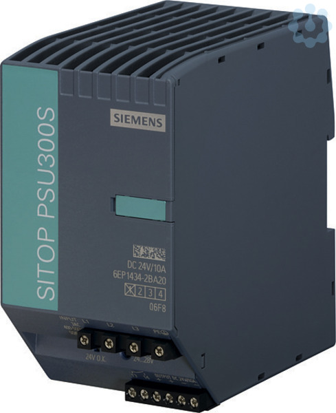 SITOP PSU300S 24 V/10 A Geregelte Stromversorgung Eingang: 3 AC 400-500 V Ausgang: DC 24 V/10 A Die 3-phasigen SITOP smart sind die universellen und leistungsstarken Standardstromversorgungen für den Maschinen- und Anlagenbau. Trotz ihrer kompakten Bauform bieten sie ein hervorragendes Überlastverhalten: Dank Extra-Power von 150% lassen sich Verbraucher mit hohem Stromverbrauch problemlos zuschalten und die dauerhafte Überlastfähigkeit von 120% bietet Leistungsreserven bei Erweiterungen. Der hohe Wirkungsgrad sorgt für niedrigen Energieverbrauch und geringe Wärmeentwicklung im Schaltschrank. Zur weiteren Erhöhung der 24 V-Verfügbarkeit können die SITOP smart Netzteile mit Puffer-, DC-USV-, Redundanz- und Selektivitätsmodulen kombiniert werden. Egal welche Branche, egal welche Anforderung ? Siemens bietet zuverlässige und effiziente Stromversorgungen für jede Anlage.