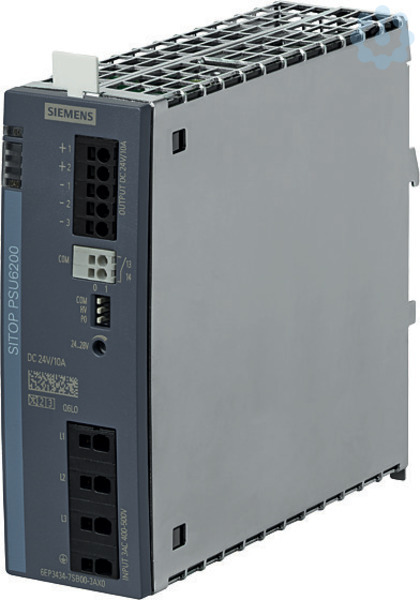 SITOP PSU6200 24 V/10 A Geregelte Stromversorgung Eingang: AC 400 - 500 V Ausgang: DC 24 V/10 A mit Diagnoseschnittstelle Die 3-phasigen SITOP PSU6200 sind Standard-Stromversorgungen für hohe technische Anforderungen. Sie eignen sich für vielfältige Anwendungen, vor allem im industriellen Umfeld wie zum Beispiel dem Serienmaschinenbau. Das wertige Design der PSU6200 Familie verbunden mit den Push-In-Klemmen steht für effektive Verdrahtung. Die lange Lebensdauer und die absolute Zuverlässigkeit machen die Module dieser Produktfamilie zu einem Allrounder. Der hohe Wirkungsgrad über den gesamten Lastbereich sowie minimale Leerlaufverluste garantieren einen ressourcenschonenden Energieverbrauch. Neuen Komfort bei Inbetriebnahme und Service bieten der Diagnosemonitor mit den LED-Anzeigen DC o. k., Auslastung und Lebensdauer, sowie das Diagnoseinterface zur Meldung von Statusinformationen.
