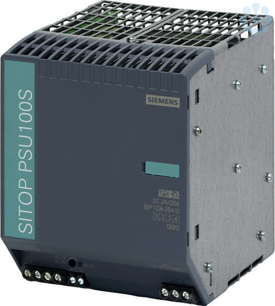 SITOP PSU100S 20 A Geregelte Stromversorgung Eingang: AC 120/230 V Ausgang: DC 24 V/20 A Die 1-phasigen SITOP smart sind die universellen und leistungsstarken Standardstromversorgungen für den Maschinen- und Anlagenbau. Trotz ihrer kompakten Bauform bieten sie ein hervorragendes Überlastverhalten: Dank Extra-Power von 150% lassen sich Verbraucher mit hohem Stromverbrauch problemlos zuschalten und die dauerhafte Überlastfähigkeit von 120% bietet Leistungsreserven bei Erweiterungen. Der hohe Wirkungsgrad sorgt für niedrigen Energieverbrauch und geringe Wärmeentwicklung im Schaltschrank. Zur weiteren Erhöhung der 24 V-Verfügbarkeit können die SITOP smart Netzteile mit Puffer-, DC-USV-, Redundanz- und Selektivitätsmodulen kombiniert werden. Egal welche Branche, egal welche Anforderung ? Siemens bietet zuverlässige und effiziente Stromversorgungen für jede Anlage.
