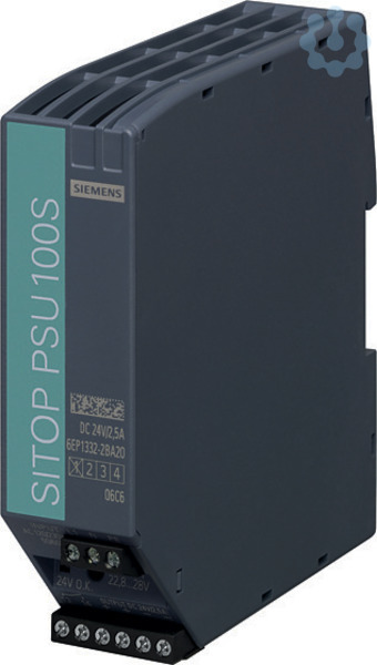 SITOP PSU100S 24 V/2,5 A Geregelte Stromversorgung Eingang: AC 120/230 V Ausgang: DC 24 V/2,5 A Die 1-phasigen SITOP smart sind die universellen und leistungsstarken Standardstromversorgungen für den Maschinen- und Anlagenbau. Trotz ihrer kompakten Bauform bieten sie ein hervorragendes Überlastverhalten: Dank Extra-Power von 150% lassen sich Verbraucher mit hohem Stromverbrauch problemlos zuschalten und die dauerhafte Überlastfähigkeit von 120% bietet Leistungsreserven bei Erweiterungen. Der hohe Wirkungsgrad sorgt für niedrigen Energieverbrauch und geringe Wärmeentwicklung im Schaltschrank. Zur weiteren Erhöhung der 24 V-Verfügbarkeit können die SITOP smart Netzteile mit Puffer-, DC-USV-, Redundanz- und Selektivitätsmodulen kombiniert werden. Egal welche Branche, egal welche Anforderung ? Siemens bietet zuverlässige und effiziente Stromversorgungen für jede Anlage.
