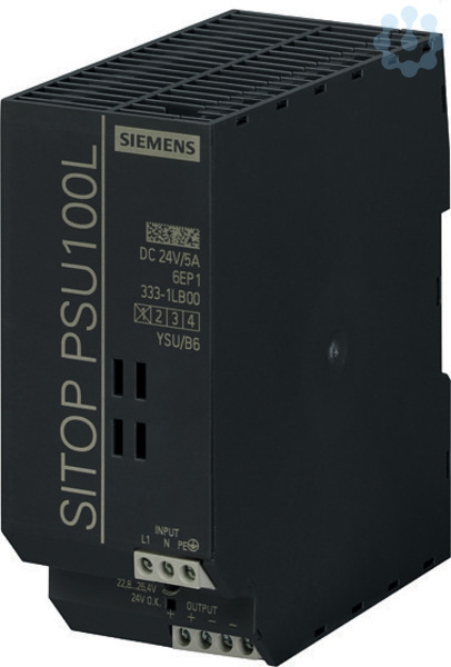 SITOP PSU100L 24 V/5 A Geregelte Stromversorgung Eingang: AC 120/230 V Ausgang: DC 24 V/5 A Die 1-phasigen Stromversorgungen SITOP lite sind für Basisanforderungen im industriellen Umfeld konzipiert und bieten alle wichtigen Funktionen zu einem günstigen Preis. Der Weitbereichseingang mit manueller Umschaltung ermöglicht den Anschluss an verschiedenste 1-phasige Versorgungsnetze. Durch die schmale Baubreite benötigen die Netzgeräte geringen Platzbedarf auf der Hutschiene und der gute Wirkungsgrad lässt wenig Verlustwärme im Schaltschrank entstehen. Zur weiteren Erhöhung der 24 V-Verfügbarkeit können die SITOP lite Netzteile mit Puffer-, DC-USV-, Redundanz- und Selektivitätsmodulen kombiniert werden. Egal welche Branche, egal welche Anforderung ? Siemens bietet zuverlässige und effiziente Stromversorgungen für jede Anlage.