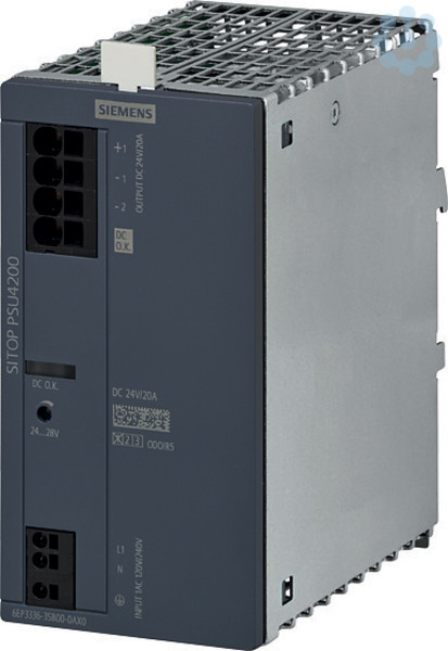 SITOP PSU4200 1AC 24 V/20 A Geregelte Stromversorgung PSU4200 Eingang: AC 120/240 V Ausgang: DC 24 V/20 A Die 1-phasigen Stromversorgungen SITOP PSU4200 sind für Basisanforderungen im industriellen Umfeld konzipiert und bieten alle wichtigen Funktionen zu einem günstigen Preis. Der Eingang mit automatischer Spannungsbereichsumschaltung ermöglicht den Anschluss an verschiedenste 1-phasige Versorgungsnetze. Durch die schmale Baubreite benötigen die Netzgeräte geringen Platzbedarf auf der Hutschiene und der gute Wirkungsgrad lässt wenig Verlustwärme im Schaltschrank entstehen. Zur weiteren Erhöhung der 24 V-Verfügbarkeit können die SITOP PSU4200 Netzteile mit Puffer-, Redundanz- und Selektivitätsmodulen kombiniert werden. Egal welche Branche, egal welche Anforderung - Siemens bietet zuverlässige und effiziente Stromversorgungen für jede Anlage.