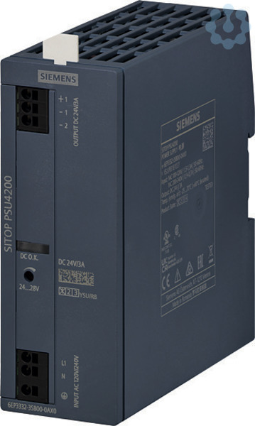 SITOP PSU4200 1AC 24 V/3 A Geregelte Stromversorgung PSU4200 Eingang: AC 120/240 V Ausgang: DC 24 V/3 A Die 1-phasigen Stromversorgungen SITOP PSU4200 sind für Basisanforderungen im industriellen Umfeld konzipiert und bieten alle wichtigen Funktionen zu einem günstigen Preis. Der Eingang mit automatischer Spannungsbereichsumschaltung ermöglicht den Anschluss an verschiedenste 1-phasige Versorgungsnetze. Durch die schmale Baubreite benötigen die Netzgeräte geringen Platzbedarf auf der Hutschiene und der gute Wirkungsgrad lässt wenig Verlustwärme im Schaltschrank entstehen. Zur weiteren Erhöhung der 24 V-Verfügbarkeit können die SITOP PSU4200 Netzteile mit Puffer-, Redundanz- und Selektivitätsmodulen kombiniert werden. Egal welche Branche, egal welche Anforderung - Siemens bietet zuverlässige und effiziente Stromversorgungen für jede Anlage.