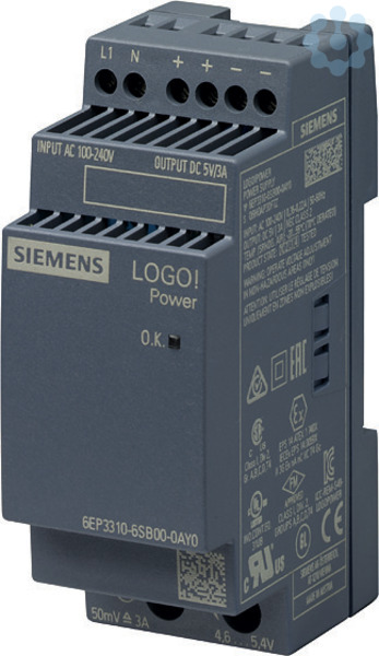 LOGO!POWER 5 V / 3 A Geregelte Stromversorgung Eingang: AC 100-240 V Ausgang: DC 5 V / 3 A Die Mini-Netzgeräte LOGO!Power im Design der LOGO!8-Module bieten viel Leistung auf kleinstem Raum. Der gute Wirkungsgrad über den gesamten Lastbereich und die geringe Verlustleistung im Leerlauf garantieren einen effizienten Betrieb. Der Weitbereichseingang für 1-phasige Netze und für Gleichspannungsnetze, sowie die Leistungsreserve beim Einschalten kapazitiver Lasten, erfüllen Anforderungen zahlreicher Applikationen. Einen universellen Einsatz ermöglichen auch der große Temperaturbereich und umfangreiche Zertifizierungen. Die zuverlässigen Stromversorgungen mit ihrem flachen stufenförmigen Gehäuse lassen sich höchst flexibel integrieren - beispielsweise in Installationsverteilern. Egal welche Branche, egal welche Anforderung ? Siemens bietet zuverlässige und effiziente Stromversorgungen für jede Anlage.