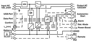 Unterbrechungsfreie Stromversorgung mit IQ Technology 1AC/1AC/500 VA. Für 120 V AC/230 V AC Anwendungen. Gibt jederzeit Auskunft über Ladezustand, Restlaufzeit und Lebensdauer des Akku-Modules und steigert so die Anlagenverfügbarkeit.