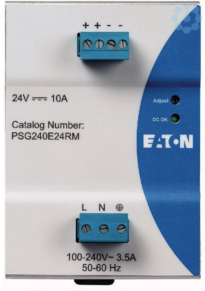 Stromversorgungsgerät, Sortiment: Stromversorgungen PSG, Untersortiment: Stromversorgungsgerät, Beschreibung: Power Boost durch 1,5-fachen Nennstrom für 5 s, PELV (EN 60204), SELV (EN 60950), Breite: 85 mm, Höhe: 121 mm, Tiefe: 124.1 mm, 1-phasig, Eingangsspannungsbereich: 85 - 264 V AC, (120 - 375 V DC), Bemessungseingangsspannung: 100 - 240 V AC, 125 - 250 V DC, Bemessungsausgangsspannung: 24 V DC (± 2%), Bemessungsausgangsstrom: 10 A, Einstellbereich der Ausgangsspannung: 24 - 28 V DC, Nennausgangsleistung: 240 W, Schutzart: IP20, Verlustleistung: 30 W