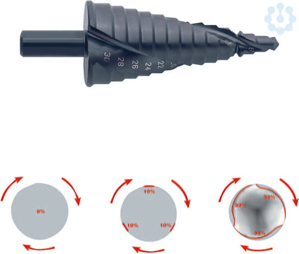 Höhere Standzeit. Geringer Kraftaufwand. Bessere Schneidleistung. Ruhigeres Arbeiten. Geringere Gratbildung. Zum Aufreiben von Blechen, Rohren, NE Metallen und Kunststoff.