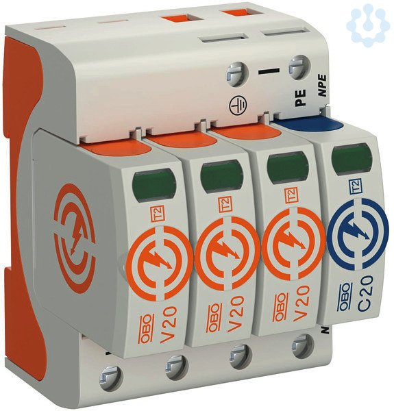 Der V20 Überspannungsableiter aus halogenfreiem Kunststoff eignet sich für einen Überspannungsschutz-Potentialausgleich nach VDE 0100-443 (IEC 60364-4-44). Eine dynamische Abtrennvorrichtung und optische Statusanzeige zeichnen die modular steckbaren Ableiter aus. Die NPE-Variante ist zusätzlich mit einer hochbelastbaren Funkenstrecke zwischen Null- und Schutzleiter ausgestattet. Besonders geeignet ist der SurgeController für den Potentialausgleich in Haupt- und Unterverteilungen, je nach Typ in den Bereichen von TN-, TT- Netzen. Dank der hochleistungsfähigen Varistoren beträgt das Ableitvermögen bis 40 kA (8/20) pro Pol. Die vibrationssichere Verrastung und die Spannungs- sowie Typenkodierung sorgen für Sicherheit und vermeiden Verwechslungen von Ober- und Unterteilen. Durch die keilförmige Ausführung der Kontakte ist ein einfaches Einsetzen und noch einfacheres Entnehmen der Oberteile möglich. Über den auf dem Leistungsschild aufgebrachten QR-Code lassen sich mit Hilfe mobiler Endgeräte schnell und einfach z