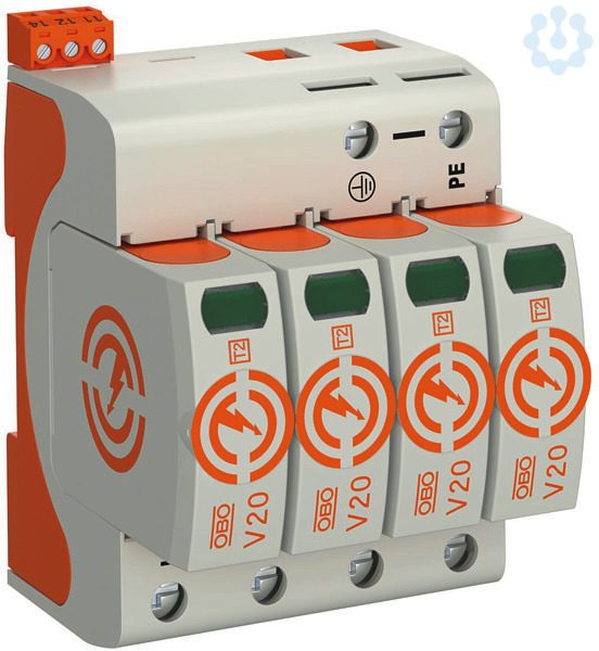 Der V20 Überspannungsableiter aus halogenfreiem Kunststoff eignet sich für einen Überspannungsschutz-Potentialausgleich nach VDE 0100-443 (IEC 60364-4-44). Eine dynamische Abtrennvorrichtung und optische Statusanzeige zeichnen die modular steckbaren Ableiter aus. Die FS-Variante ist zusätzlich mit einem potentialfreien Wechslerkontakt ausgestattet, der eine Fernsignalisierung ermöglicht. Besonders geeignet ist der SurgeController für den Potentialausgleich in Haupt- und Unterverteilungen, je nach Typ im Bereich von TN-Netzen. Dank der hochleistungsfähigen Varistoren beträgt das Ableitvermögen bis 40 kA (8/20) pro Pol. Die vibrationssichere Verrastung und die Spannungs- sowie Typenkodierung sorgen für Sicherheit und vermeiden Verwechslungen von Ober- und Unterteilen. Durch die keilförmige Ausführung der Kontakte ist ein einfaches Einsetzen und noch einfacheres Entnehmen der Oberteile möglich. Über den auf dem Leistungsschild aufgebrachten QR-Code lassen sich mit Hilfe mobiler Endgeräte schnell und einfach zusä