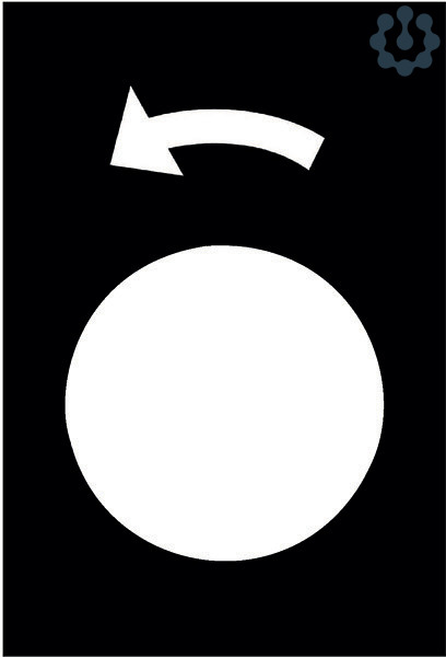 Schilder für Hängetaster XAC A. Bezeichnungsschild, Drehwerk links, langsam. Farbebeschriftung weiß, Grundfarbe schwarz. Schildgröße 30 x 40 mm.
